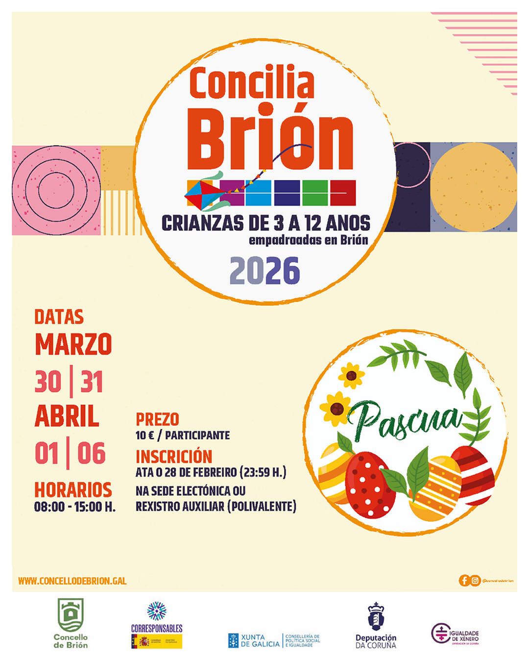 Programa de conciliación para facilitar a organización das familias durante as datas de Pascua 2026, ao tempo que ofrecemos ás crianzas un espazo de diversión, convivencia e aprendizaxe.