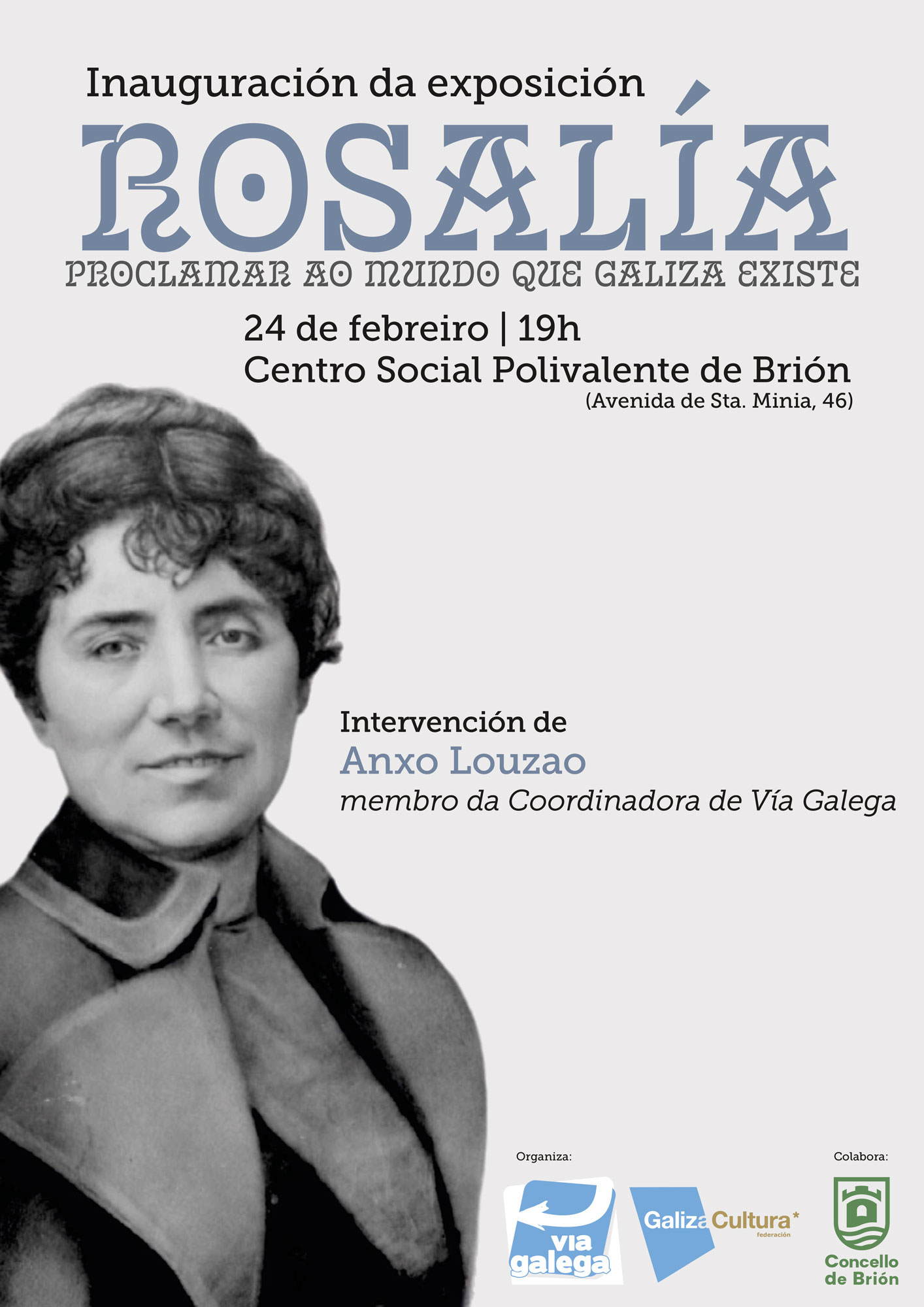 A plataforma social Vía Galega presenta en Brión a mostra "Rosalía, proclamar ao mundo que Galiza existe"