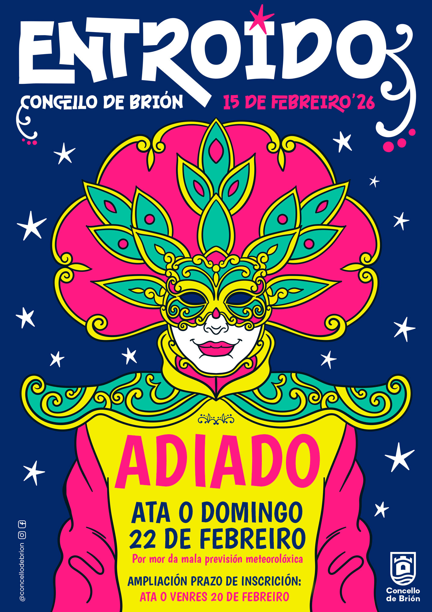 Don Carnal retorna a Brión para chamar á veciñanza a vivir o Entroido. A festa celebrarase outra vez na Rúa Tarrío, ao carón do Parque Cuberto de Lamiño. Así, a xornada incluirá o gran desfile, o concurso de disfraces e o baile, amenizado pola ORQUESTRA ESCAPARATE.