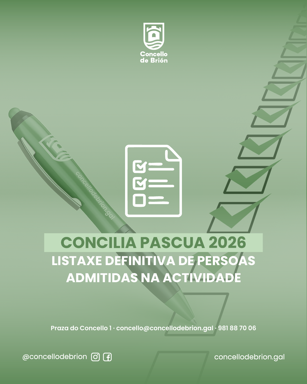 De acordo co establecido nas normas que regulan a convocatoria de servizos, "CONCILIA NADAL 2025 E CONCILIA ENTROIDO E CONCILIA PASCUA 2026", publícanse as listaxes de persoas admitidias na actividade